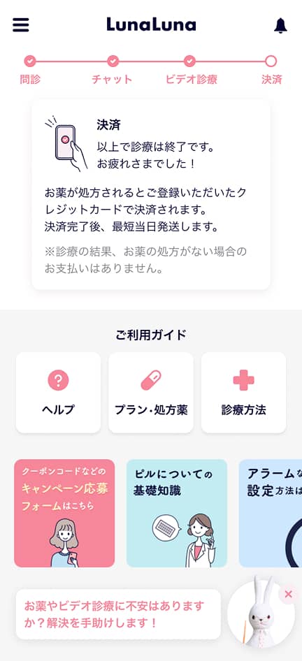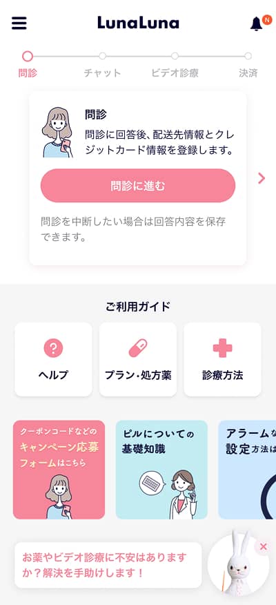 - ルナルナ おくすり便は、医療機関と利用者の皆様との間でオンライン診療を実現するプラットフォームです。実際の診療・薬剤の処方および発送は医療機関および医師が行います。
